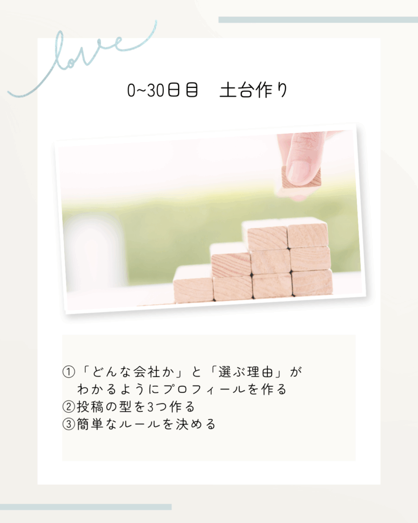 Instagramだけでなく、ホームページ(SEO)や各種SNSは運用を続けて初めて成果につながる性質があるため、以下の3つを運用開始前に企業として固めておく必要があります。