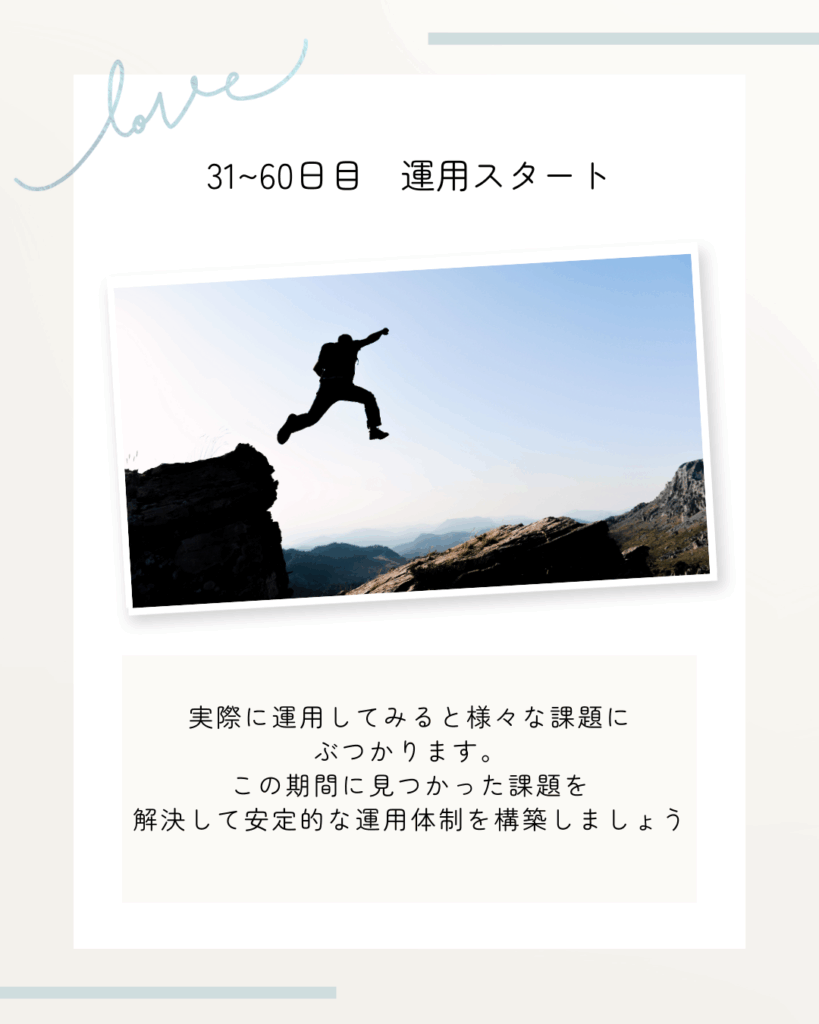 運用してわかった課題を解決していき、安定的に運用していける体制を構築しましょう。