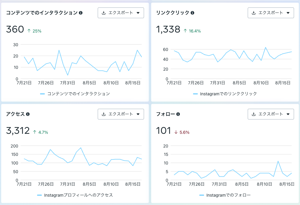 認知を狙うなら、まずはリーチとインプレッションを安定的に伸ばしつつ、保存率とプロフィールアクセスの推移を見ましょう。