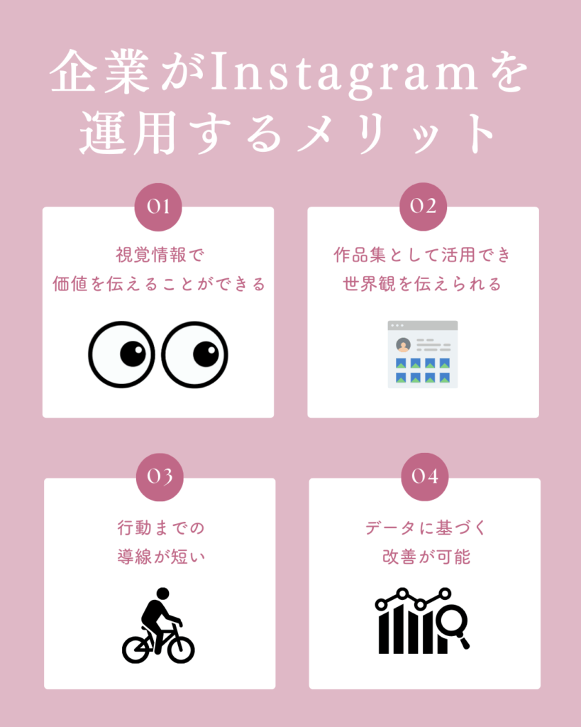 本記事では企業がInstagramを運用するメリット・デメリットを解説し、自社が運用を始めるべきか判断する材料と運用体制の構築方法まで紹介していきます。